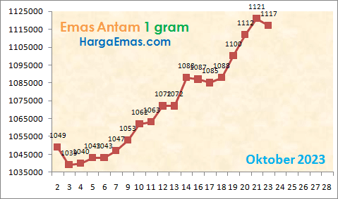 Sedangkan kalau dilihat dalam satu bulan terakhir, harganya berkisar antara Rp 1.039.000 per gram sampai Rp 1.121.000 per gram.