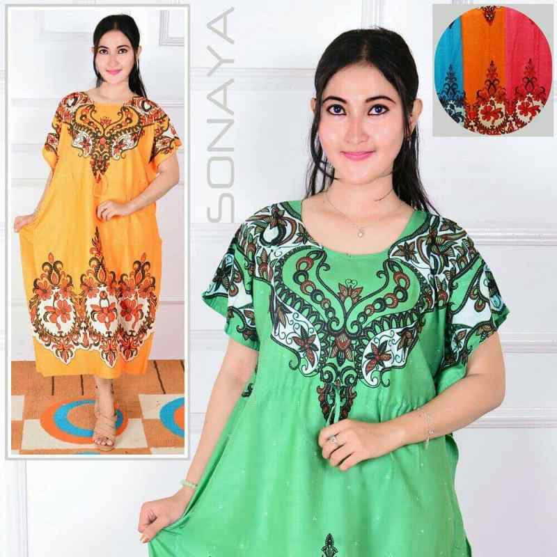 Meski terkesan ramai dan berwarna cerah, perpaduan warnanya apik dan enak dipandang. Motif daster ini tampak eksklusif dengan banyak pilihan warna yang semuanya memberikan suasana ceria. Model daster ini loose sehingga sangat longgar dan nyaman dipakai, bisa ditambahkan dengan aksesoris seperti tali pinggang untuk menampilkan model yang baru.