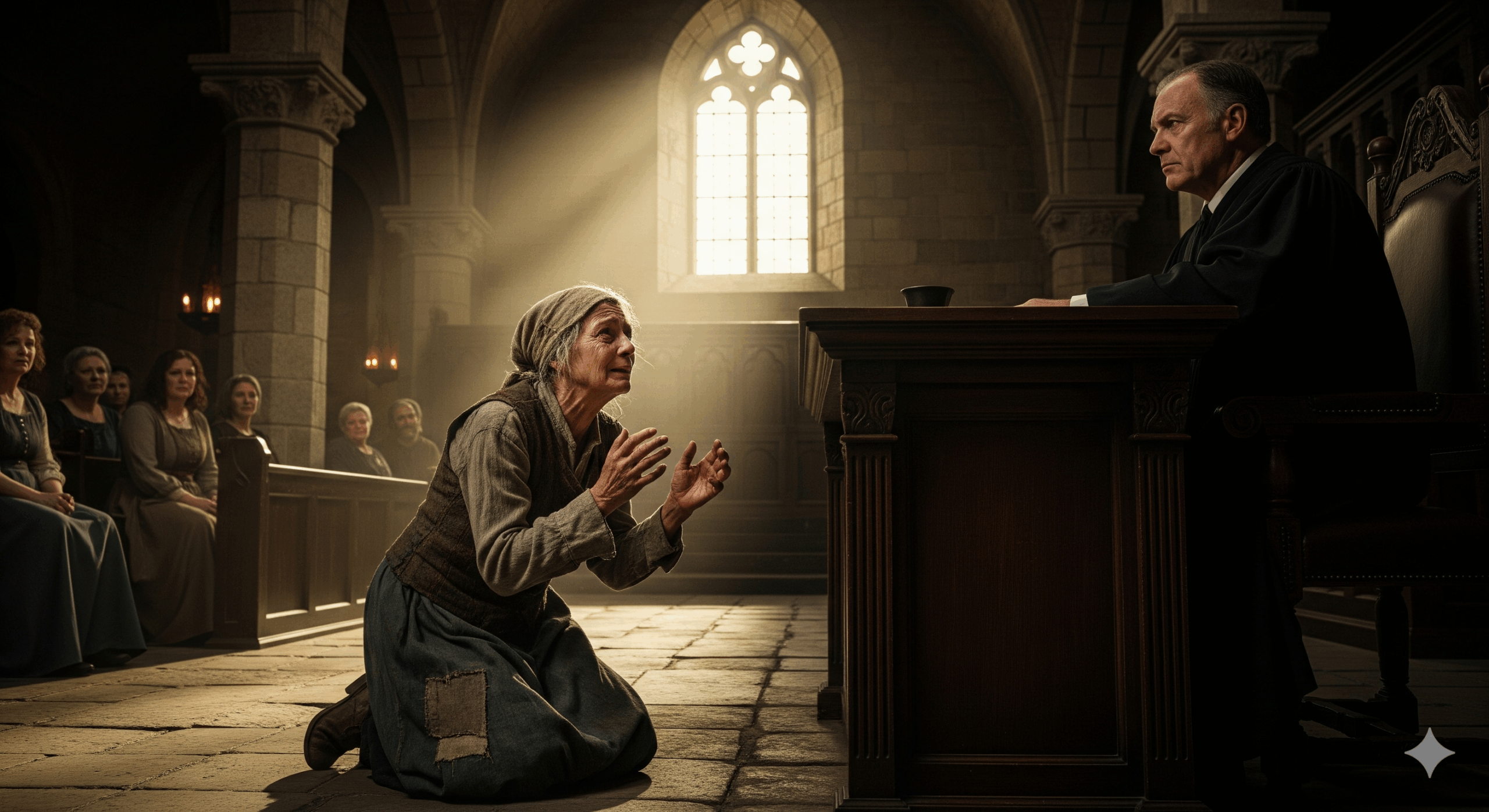Ia berkata, “Di sebuah kota ada seorang hakim yang tidak takut akan Allah dan tidak menghormati siapa pun.