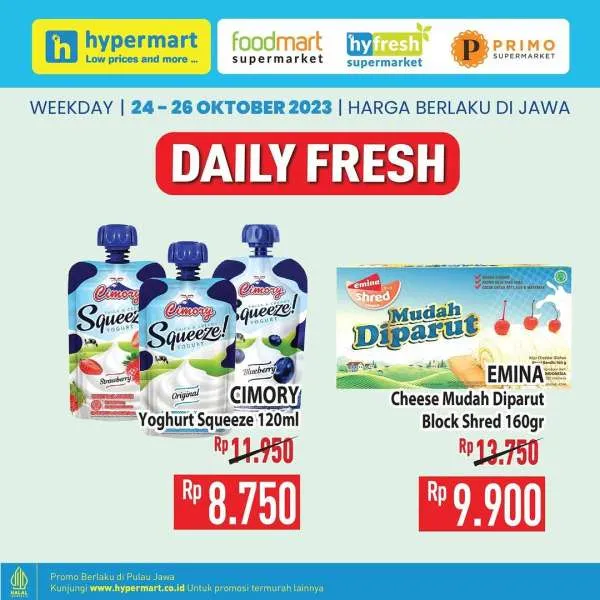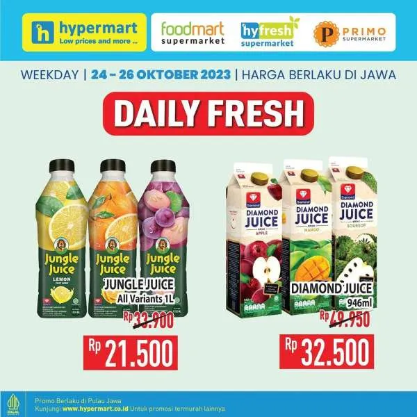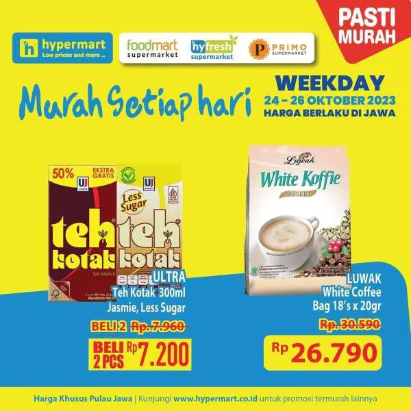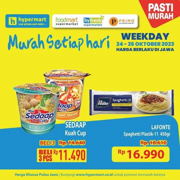 Tapi, perlu diinget ya, promo Hyper Diskon Weekday ini cuma berlaku buat Hypermart di Pulau Jawa, jadi buat temen-temen yang di luar Jawa, bisa cek harga promo Hypermart di kota masing-masing lewat Instagram highlights Hypermart (@hypermart_id) atau langsung ke websitenya di: