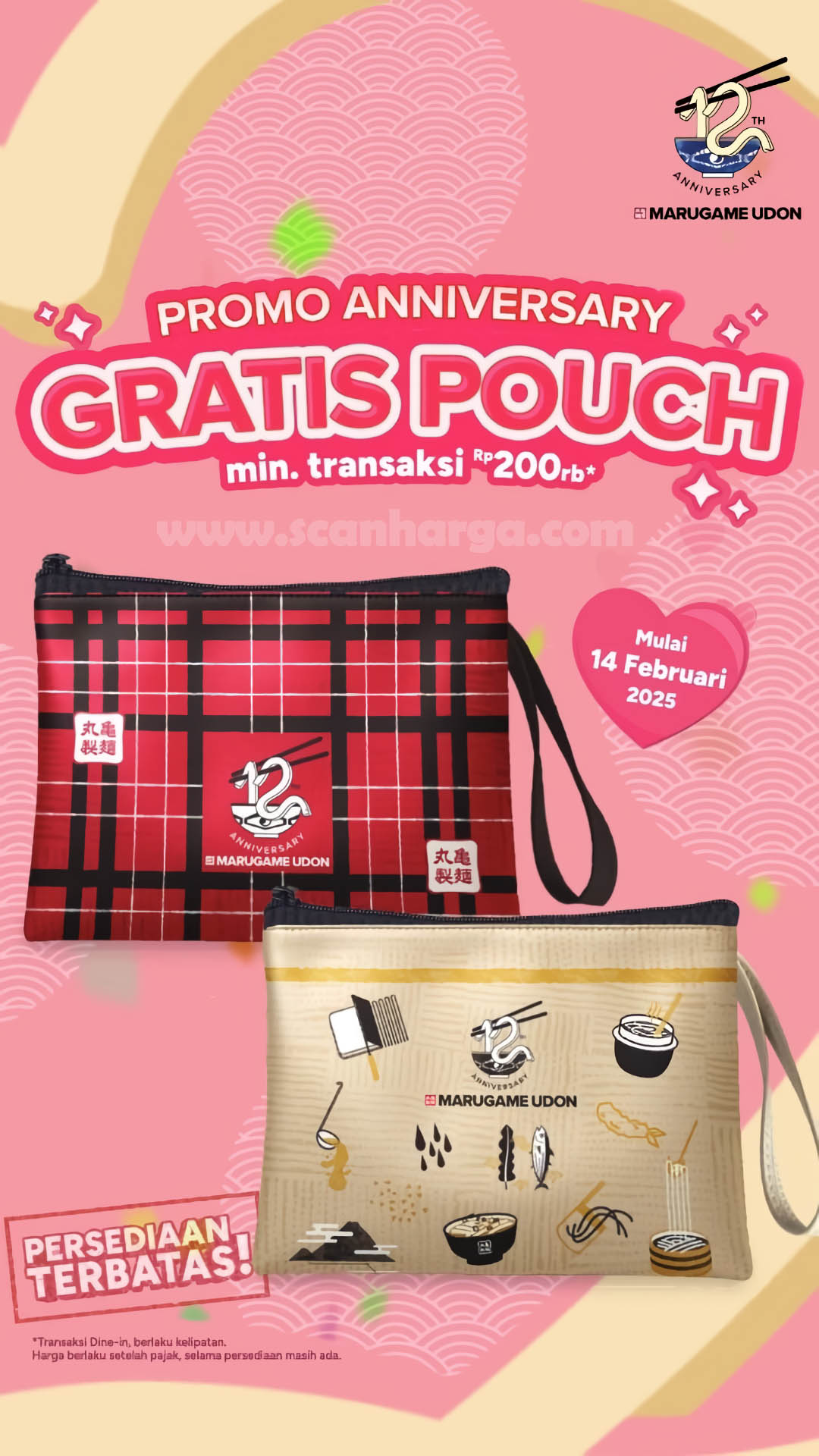 ๐ GRATIS POUCH KEREN! ๐ Mulai 14 Februari 2025, setiap belanja Rp 200.000 di Marugame Udon, lo langsung dapet Pouch eksklusif GRATIS! Keren banget buat nambah koleksi lo! Tapi inget ya, promo ini selama persediaan masih ada! Jadi, jangan sampai kelewatan! ๐๏ธ๐ฅ
