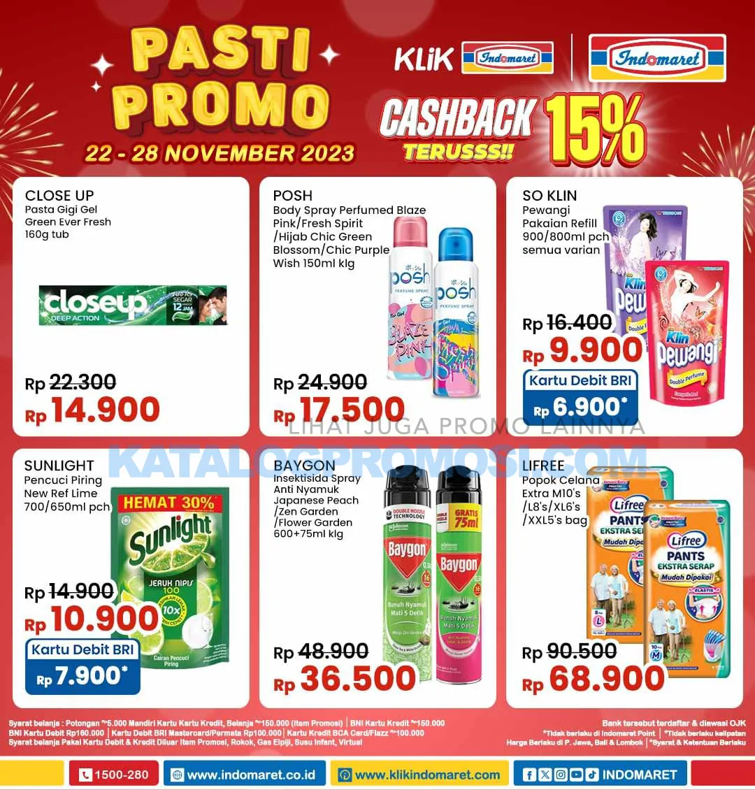 S&K Promo Bertanda Kartu Debit BRI (Mastercard): Belanja produk lain min. Rp100.000 (tidak termasuk item promo), berlaku 1 kali/kartu/hari, gak berlaku kelipatan. Pembelian di toko Indomaret.