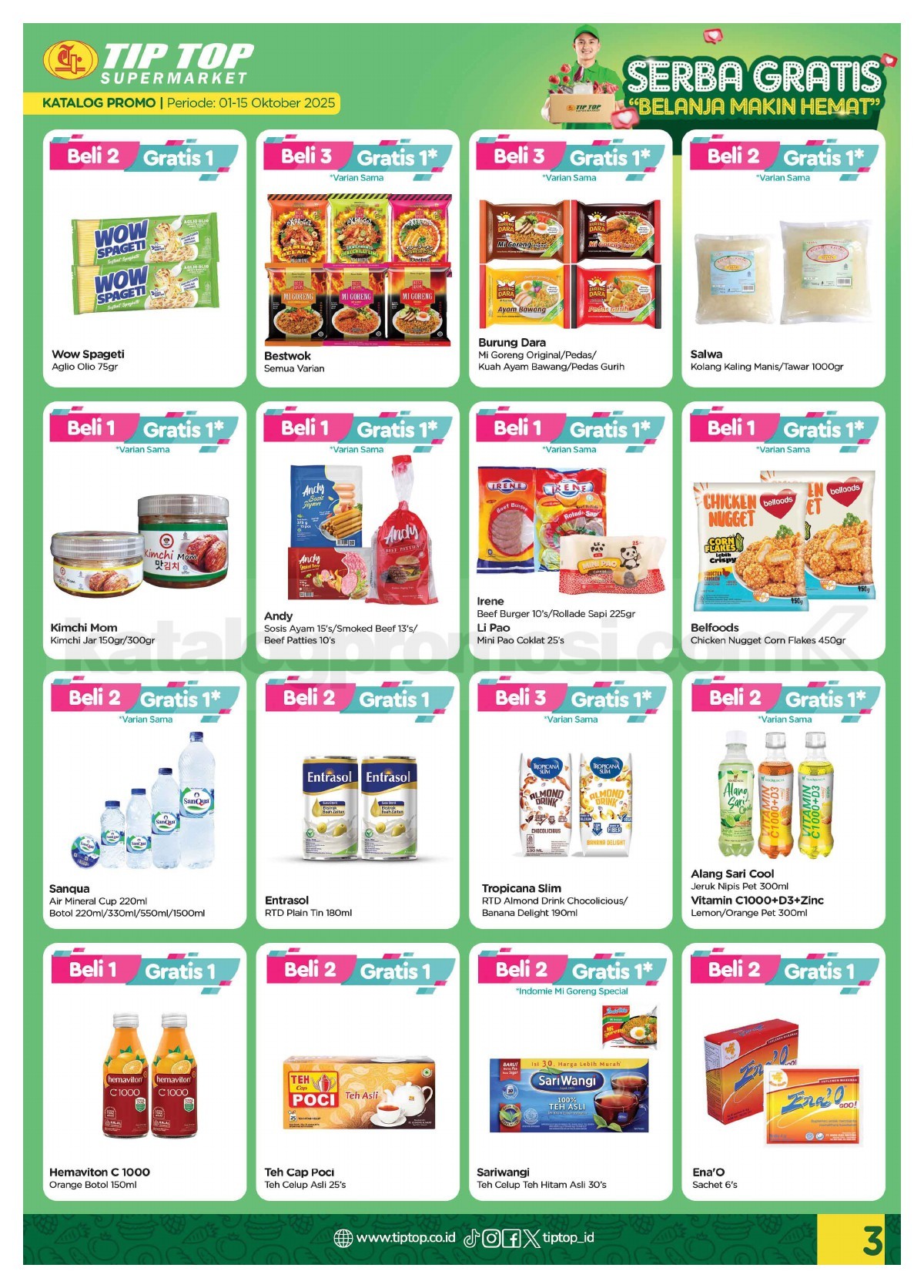 Di katalog mingguan kali ini, banyak banget produk yang dapet harga spesial. Dari bahan makanan, cemilan, perlengkapan dapur, sampe barang rumah tangga—all in dengan harga TIPis tapi kualitas tetep TOP. 🔥