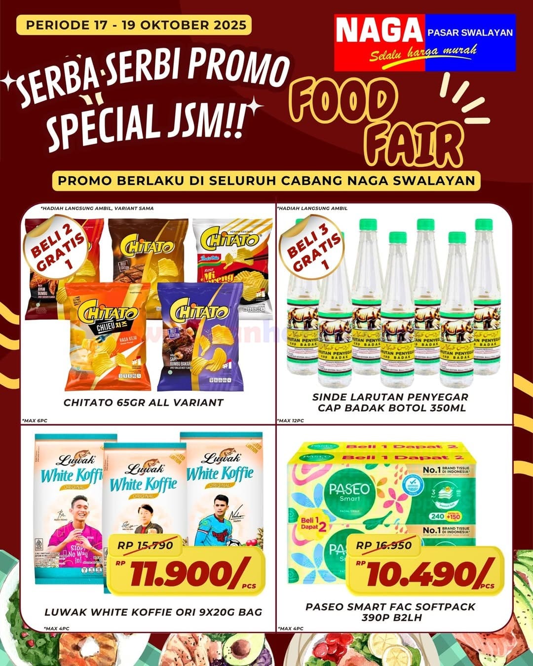 Promo JSM Naga Swalayan 17–19 Oktober 2025, Food Fair Beli 2 Gratis 1