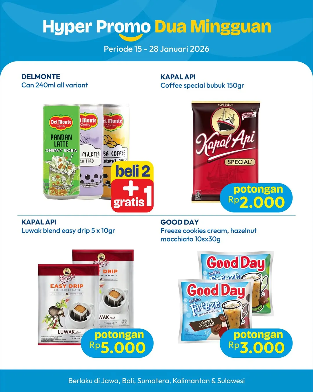 Promo dua mingguan ini berlaku di banyak wilayah Indonesia, termasuk Jawa, Bali, Sumatera, Kalimantan, dan Sulawesi. Agar tidak ketinggalan informasi harga sesuai kota, pelanggan dapat memantau pembaruan melalui akun Instagram resmi Hypermart atau situs web resminya. Dengan perencanaan yang tepat, belanja akhir Januari bisa terasa lebih ringan dan tetap hemat.