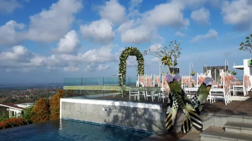 Di Jimbaran, ada Skymax Rooftop yang menawarkan konsep restoran All You Can Eat Bali. Kamu bisa menikmati kuliner ala barat dengan pemandangan indah dari pinggir kolam renang yang berada di atas gedung. Selain menu makanan enak yang murah, kamu juga bisa berenang di kolam renang dengan cukup membayar Rp 100.000 saja!