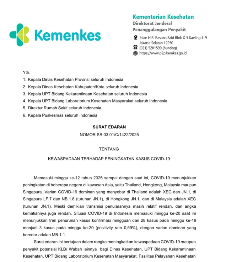 Intinya sih, meskipun kondisi Indonesia masih aman, jangan sampe kita lengah. Kemenkes udah kasih warning lewat surat edaran ini biar kita semua tetep siaga, tapi gak panik. Stay smart, stay safe, and stay stylish, bestie! ๐ ๐ท