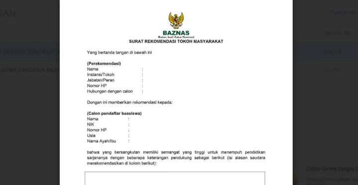 Google Drive – Format Surat Rekomendasi Tokoh Masyarakat BAZNAS 2025 (Klik di Sini)