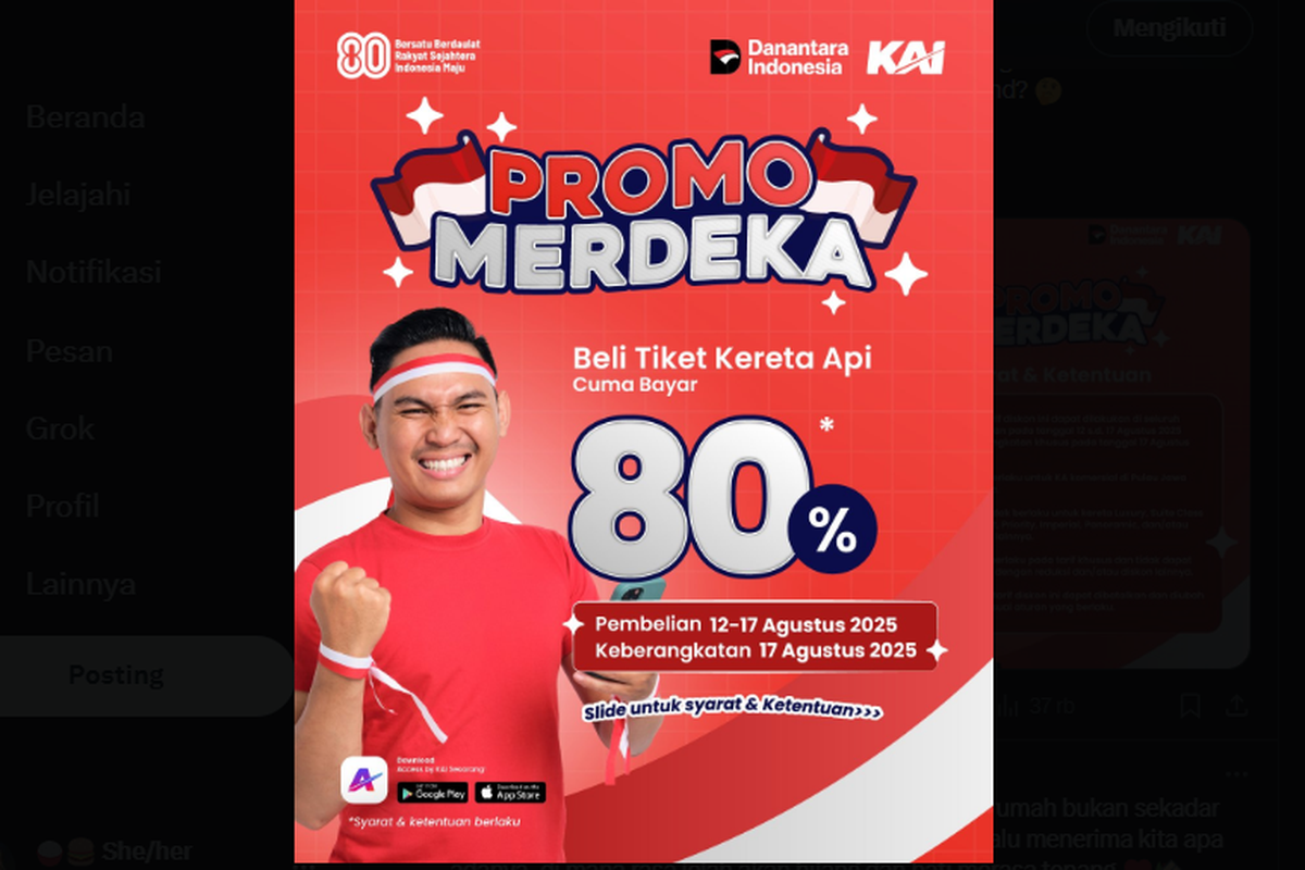 - Beli tiket promo ini di semua channel resmi KAI tanggal 12–17 Agustus 2025.